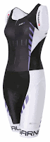 3) The one-piece tri suit. This is another common option, but more often seen at the shorter races. The one piece can be quite comfortable, as it holds in place better than the top/shorts combo. No chance for the shirt to ride up or sag, and you won't get that lovely sunburn on your lower back. I wouldn't recommend this for a half-ironman unless you are really fast or don't plan on stopping at the port-o-potty.