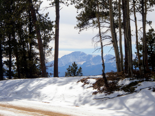 When I got to the top of the loop... I paused to take a break and enjoy the scenery and the quiet.  And then I decided I was enjoying myself too much to head back home.  So, I ventured over onto Rampart Range road and just kept running...    I've been down this road many times before, but it was much different than the Jeep jarring washboard, dust cloud billowing drive in search of some fun 4X4 trails...  instead it was a 5 mph, quiet and peaceful ride...  the only sounds being the birds, wind through the trees, my steady breathing and rhythmic footfalls..