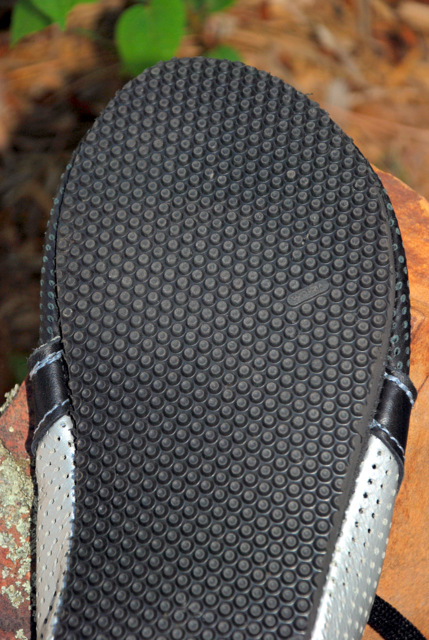 The soles are a very flexible Vibram sole (same tread pattern as on the Bedrock Earthquake huaraches), and on top sits a leather insole of about 2mm I would estimate.