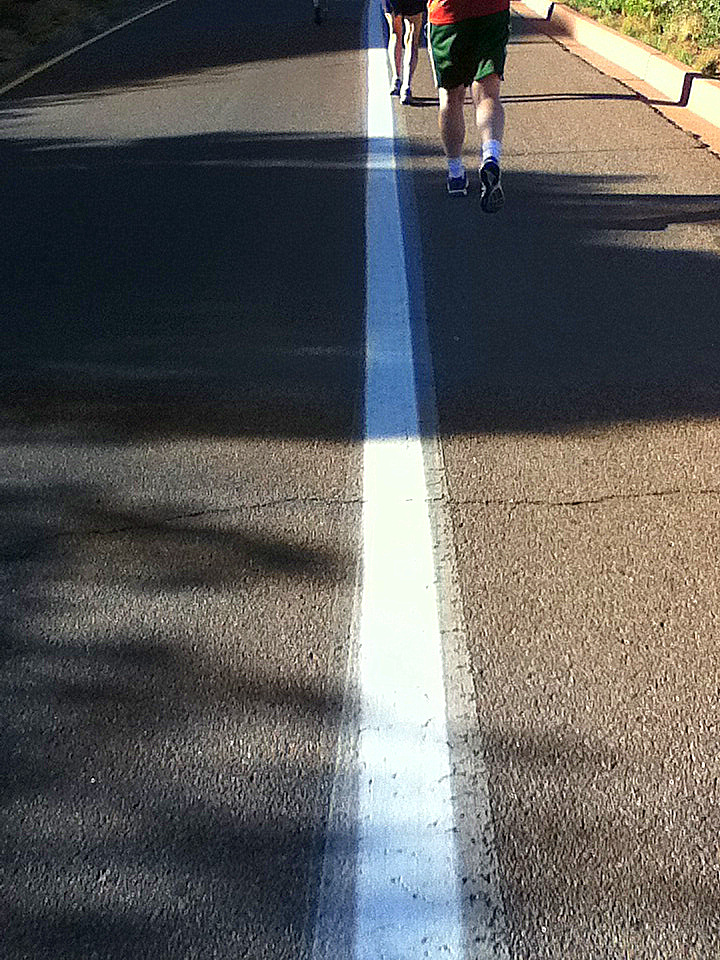 I also spent a lot of time on this run focused on this white line. It reminded me of a great blog that I follow called Running on the White Line. This focus came in handy on the hills as I imagined it as a magnetized strip drawing me up the hills, or a metal rail to ride on the downhills. I know.. kind of goofy, but hey, I'll try any mental tricks if it gets me to the finish!