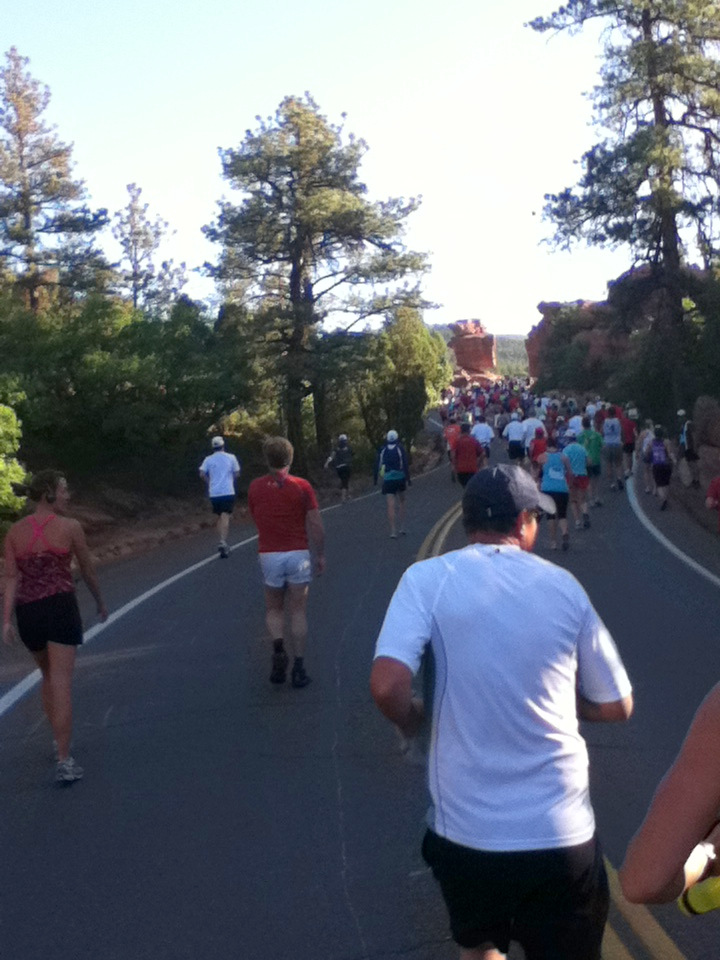 Road Glove, but because of the bruise on my foot, I opted for the Trail Glove and the slightly better protection from the rock plate. Overall my foot felt great. The pic above was around mile 4 I think... a long grinder of a hill, and into a strong wind also. It was pretty windy in the park that day.
