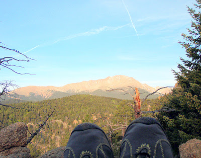 Of course, none of my reviews are complete unless I've gone up the Manitou Incline a few times, and down Barr Trail. I haven't been up the Incline as often as I was going over the winter, but this morning I was about 30 sec shy of my personal best going up.. I credit the light shoes! Then of course, I had to put my feet up in front of Pikes Peak.. hard to believe I am planning on running up and down that next summer!