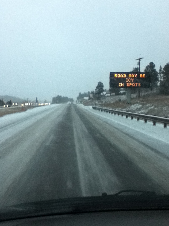 Unfortunately, it was really only snowing up here in Woodland Park, and by the time I got to the bottom of the pass, there was no snow, just a little overcast. Oh well, at least it was fairly warm.. around 35F (2C).