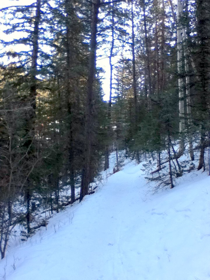 After a bit of a drop, there is a pretty steep climb on the western end of the trail, finally reaching the top of a really crazy drop that I am sure MTB'ers LOVE... I just got a pic as I reached it, but you can't really see the drop down the hill. Glad I had Yaktrax on to help with the braking on the way down!