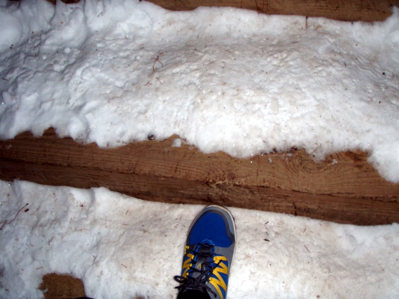 So, this morning I put them on to climb the Manitou Incline, and to make the run down Barr Trail (4.5 mi). We had a lot of snow last week, and much of it was still around, but had been compacted, melted, and refrozen in many sections. I left my YakTrax behind, hoping to see what kind of traction I would get from these shoes. In retrospect, I should have carried them along, but more on that in a bit.