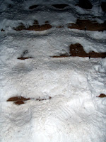So, aside from the pratfalls I took on the ice, it was a good run down, and the shoes performed well. In many ways, the ground feel through the soles was very much like wearing my 6mm huaraches, only with the extra protection and warmth around my foot. This was helpful for those times that I would drag across a larger rock etc. I was also quickly reminded of the minimal sole when I made a misstep, and stepped squarely on a sharp medium sized rock.. which promptly elicited an s-bomb... (is it considered cursing if you are in the middle of the woods and no one is around to hear it??). Anyway, that did a good job of reminding me that just because it felt like wearing a traditional shoe, I had to keep focused as much as in my huaraches or barefoot.