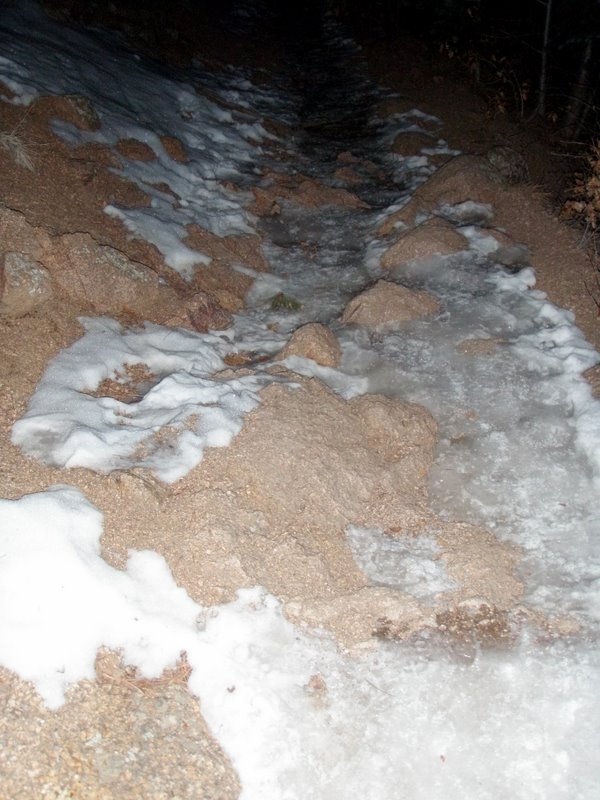 I did fine, taking it easy, until about halfway down. Things were feeling great and I picked up the downhill pace.. only to hit an icy section with no way to slow down. Needless to say, I found myself laid flat out on the trail, wondering what happened :-).